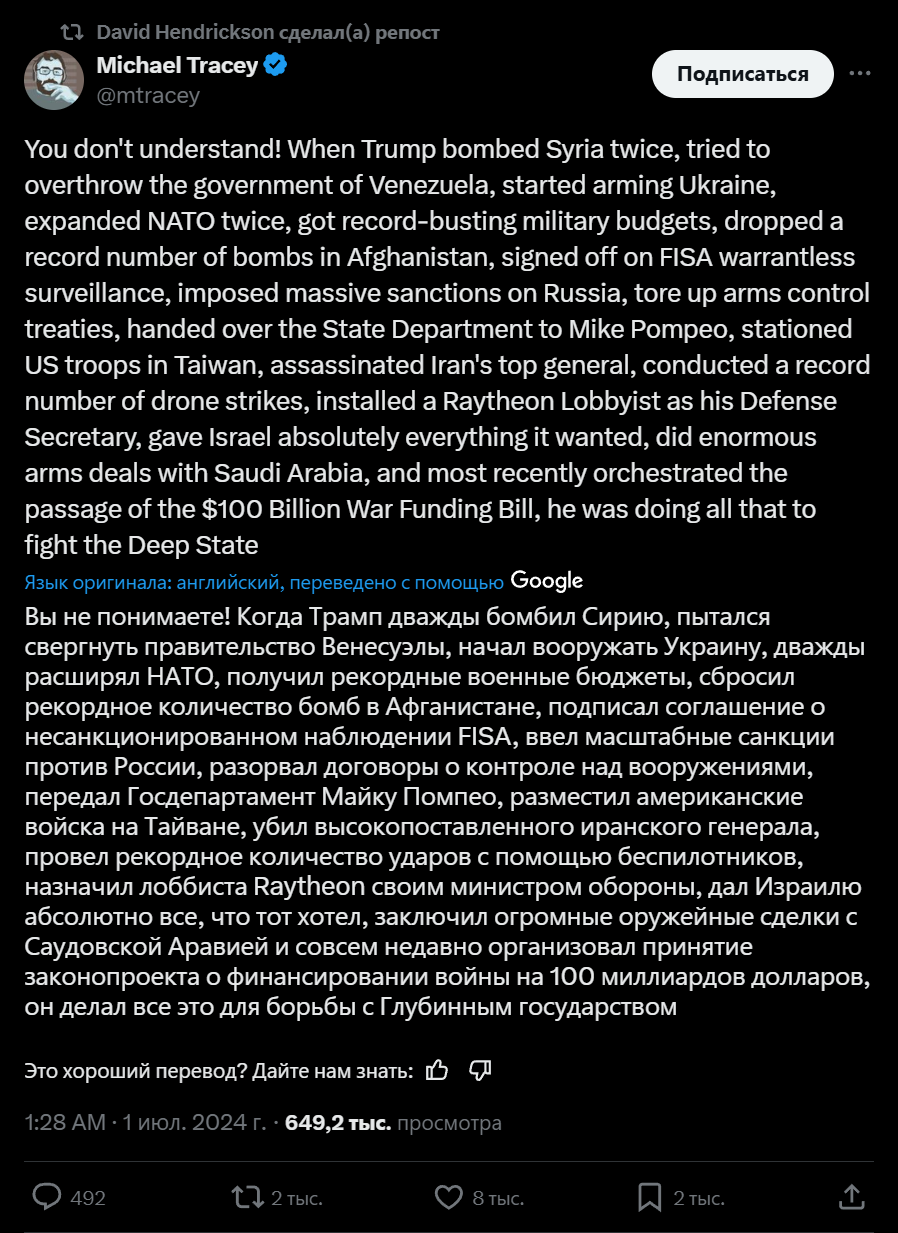 Надежды на то, что с приходом Трампа внешняя политика США изменится, крайне наивны. В свой предыдущий срок Трамп действовал точно так же, как и его предшественники.